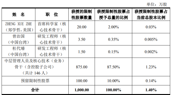 一、擬獲授限制性股票的激勵對象總體名單